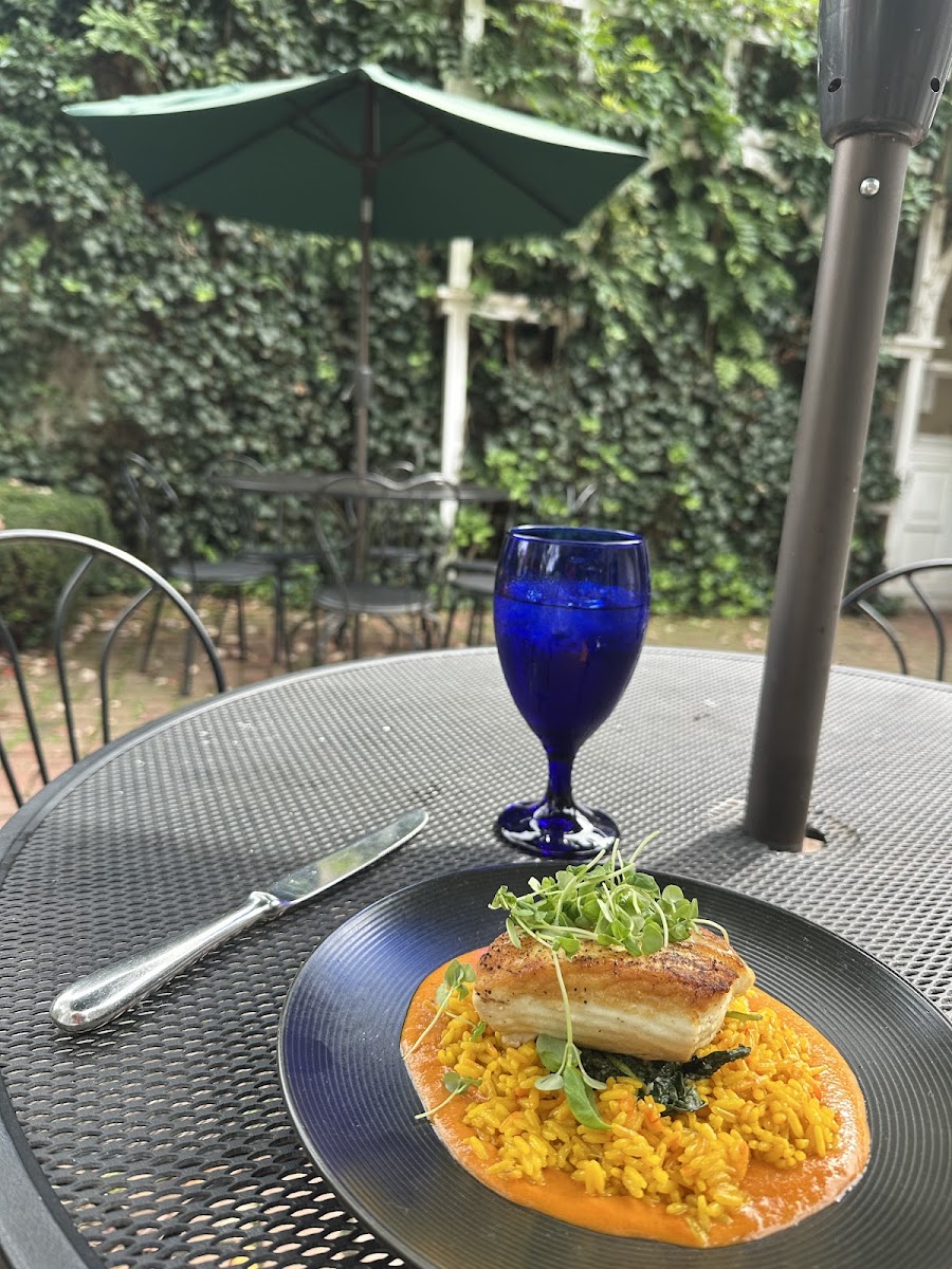 I was just passing through…just happened I’m hungry and caught my eye little country style bistro I loved the outside atmosphere Had their special, Halibut and sooo amazingly delicious plus the presentation with perfect time for Fall with bright orange/yellow rice with spinach and halibut crispy but moist and flacky inside